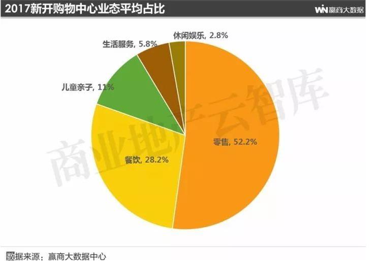 ÕûÌåÀ´¿´£¬2017Ä꿪ҵµÄ¹ºÎïÖÐÐÄ£¬ÖÖÖÖҵ̬ռ±ÈΪ£ºÁãÊÛ52.2%¡¢²ÍÒû28.2%¡¢¶ùͯÇ××Ó11%¡¢ÉúÑÄ·þÎñ5.8%¡¢ÐÝÏÐÓéÀÖ2.8%¡£