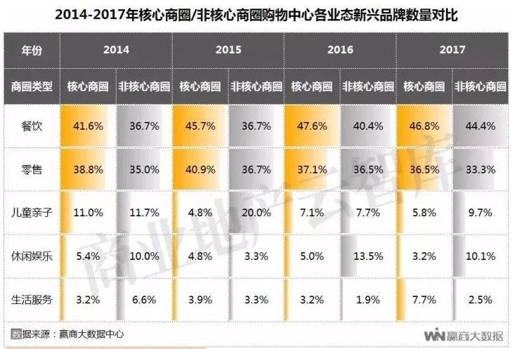 ²ÍÒû¡¢ÉúÑÄ·þÎñ¡¢ÁãÊÛÐÂÐËÆ·ÅÆÏÔןßÓڷǽ¹µãÉÌȦ¹ºÎïÖÐÐÄ¡£ÆäÖУ¬²ÍÒûÐÂÐËÆ·ÅÆÕ¼±Èºá¿ç·Ç½¹µãÉÌȦ¹ºÎïÖÐÐÄ2.4%-9%£¬ÉúÑÄ·þÎñÐÂÐËÆ·ÅÆÕ¼±ÈÔÚ2017ÄêÊǷǽ¹µãÉÌȦ¹ºÎïÖÐÐĵÄ3±¶ÓÐÓà¡£¿ÉÒÔ¿´³ö½¹µãÉÌȦ¹ºÎïÖÐÐÄÈÔÊÇ´ó¶¼²ÍÒû¡¢ÉúÑÄ·þÎñÐÂÐËÆ·ÅÆÍصêÊ×Ñ¡¡£
