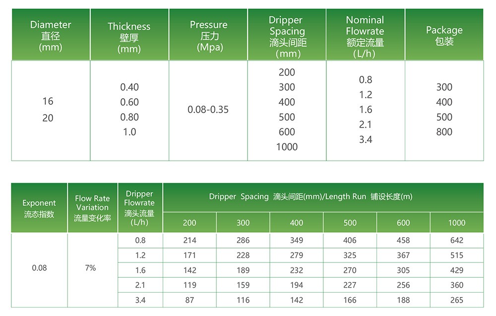 滴头流量(L/h):0.8L/h 1.2L/h 1.6L/h 2.1L/h 3.4L/h