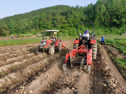 湖北省恩施土家族苗族自治州 ,地处神奇的北纬30°,森林笼罩率近70%,享有“鄂西林海”“天下硒都”的称呼。在这片富足的土地上,6t体育莳植基地正泛起出一片忙碌的情形,收割机在田间穿梭作业,机械臂忙碌挥舞,如金色珍珠般的富硒土豆破土而出,6t体育新农人亲近协作,分工明确,喜迎大丰收。