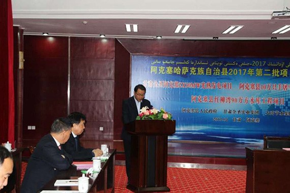 签约仪式上,酒泉市副市长何效祖对阿克塞哈萨克族自治县2017年第二批项目顺遂签约体现祝贺,殷切希望所有项目都能在阿克塞这片热土上,落地生根,茁壮生长。