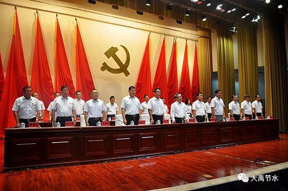 7月1日上午,6t体育节水集团庆祝建党97周年暨2018年上半年岁情总结表扬大会在酒泉国际会展中心盛大举行。 酒泉市委书记吴仰东,酒泉市委常委、市委秘书长何谋保出席聚会。 6t体育节水集团公司党委书记王冲、董事长王浩宇、总裁谢永生及全体高管、集团各中心/部分认真人,受表扬奖励的先进整体和党员代体现场加入大会;各驻外子公司全体党员、干部职工1000多人通过视频形式加入大会。 公司党委委员、总裁谢永生主持大会。