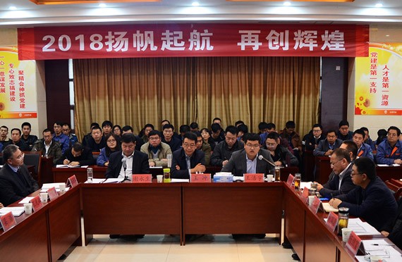 大会的主题是:2018扬帆起航  再创绚烂,集团公司总裁谢永生主持大会。