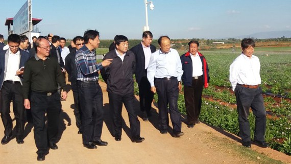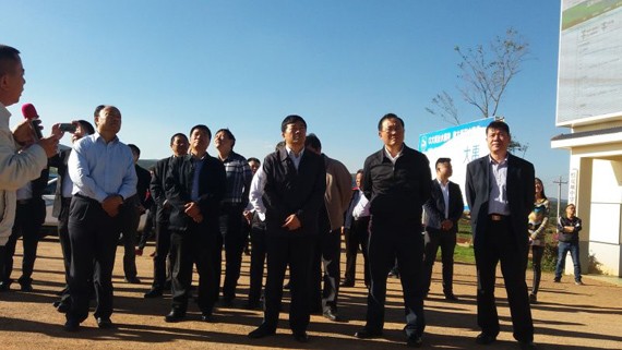 安徽省副省长方春明、水利厅厅长方志宏、省农委主任孙正东等一行十人莅临陆良县恨虎坝中型灌区立异机制试点项目区举行调研考察
