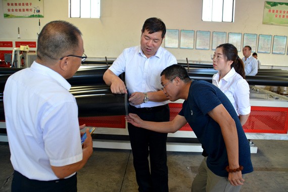 7月28日,河北省邢台市隆尧县水务局党组成员、副局长李计东一行莅临6t体育节水集团调研考察。6t体育节水集团公司总裁谢永生、董事会秘书王光敏、财务总监李福武等公司向导陪同考察。
