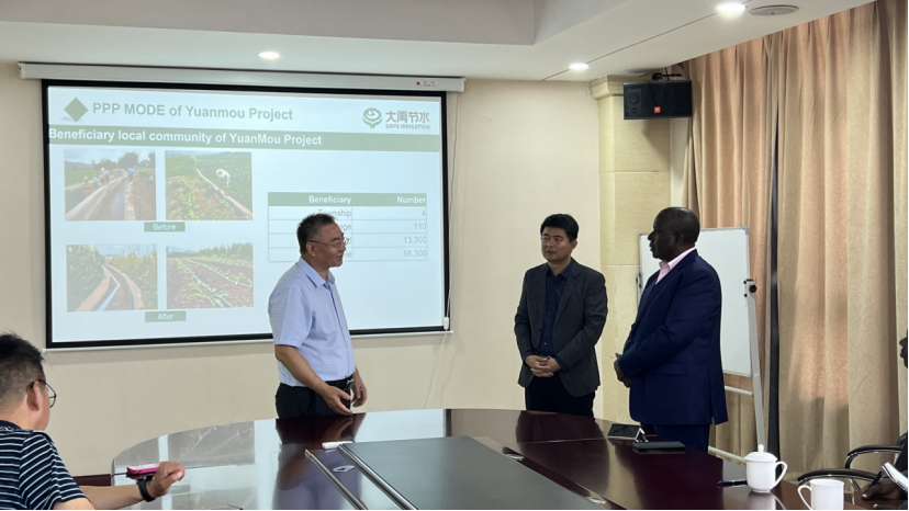 座谈时代,赞比亚农业部部长Hon Reuben Mtolo先生首先提到了中赞关系的历史渊源,谢谢中国人民为建设赞比亚做出的孝顺和牺牲。随后详细先容了赞比亚的基本概况和农业生长情形,并对赞比亚的政治情形、商业情形、农业工业开展情形做了重点先容。部长指出,赞比亚总统提倡鼎力大举生长农业工业,农业是国家下一步生长的重中之重,浇灌更是首当其冲。