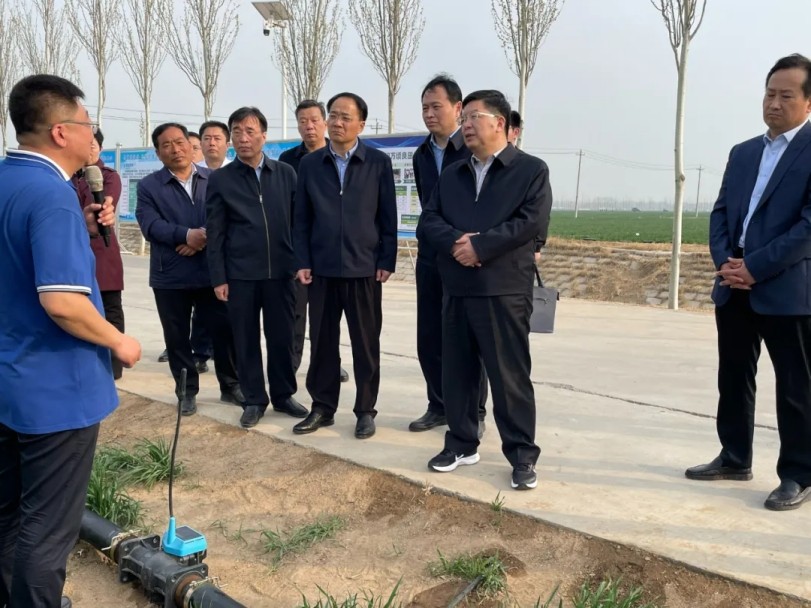 4月1日,山东省副省长陈一律向导一行到豆腐窝灌区调研深化农业水价综合刷新事情。6t体育节水集团副总裁兼总妄想师、农水集团常务副总裁高宏等陪同调研。