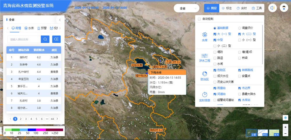 基于水利一张图,叠加全省雨情、水情、预警(提醒)、灾情信息,实现山洪灾难防御要素的实时监控和展示,周全支持水旱灾难防御智能应用营业。